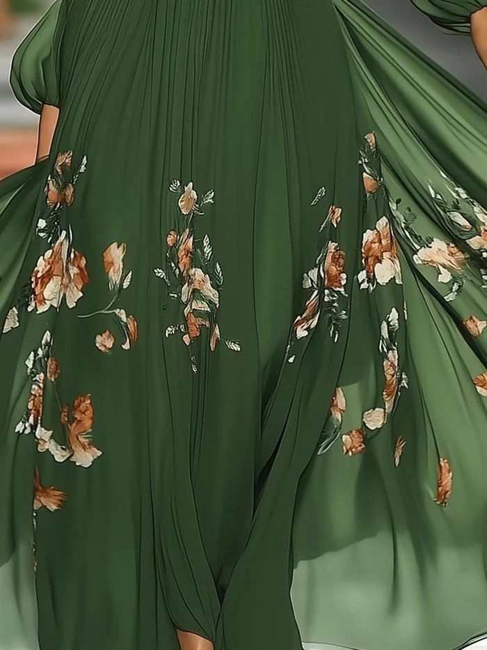 Long Sleeve Off Shoulder Digital Printing Dress